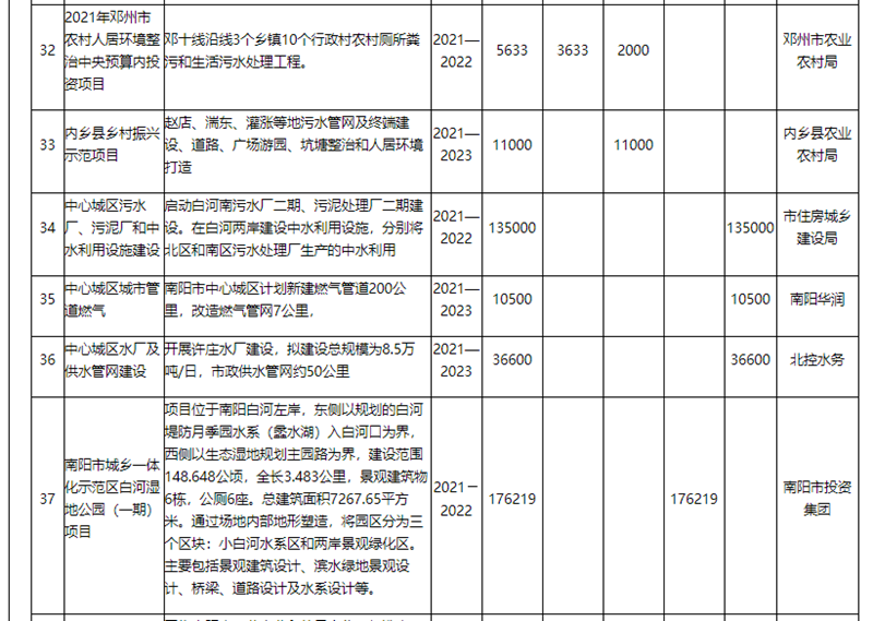 (5)生态生活体系建设,实施南阳市城区公园项目建设等38个项目,投资额302.35亿元。