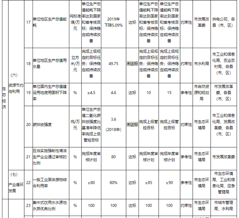 截至2019年末,34项创建指标中,达标26项,指标达标率为76.5%。未达标指标共7项,其中,4项为约束性指标(生态文明建设规划、环境空气质量、单位地区生产总值用水量和碳排放强度),3项参考性指标(河湖岸线保护率、城镇人均公园绿地面积和公共交通出行分担率)未达标。另有一项(绿色产品市场占有率)现状数据不全。有效提升上述7项指标应作为未来南阳市创建国家生态文明建设示范市的重点工作任务。